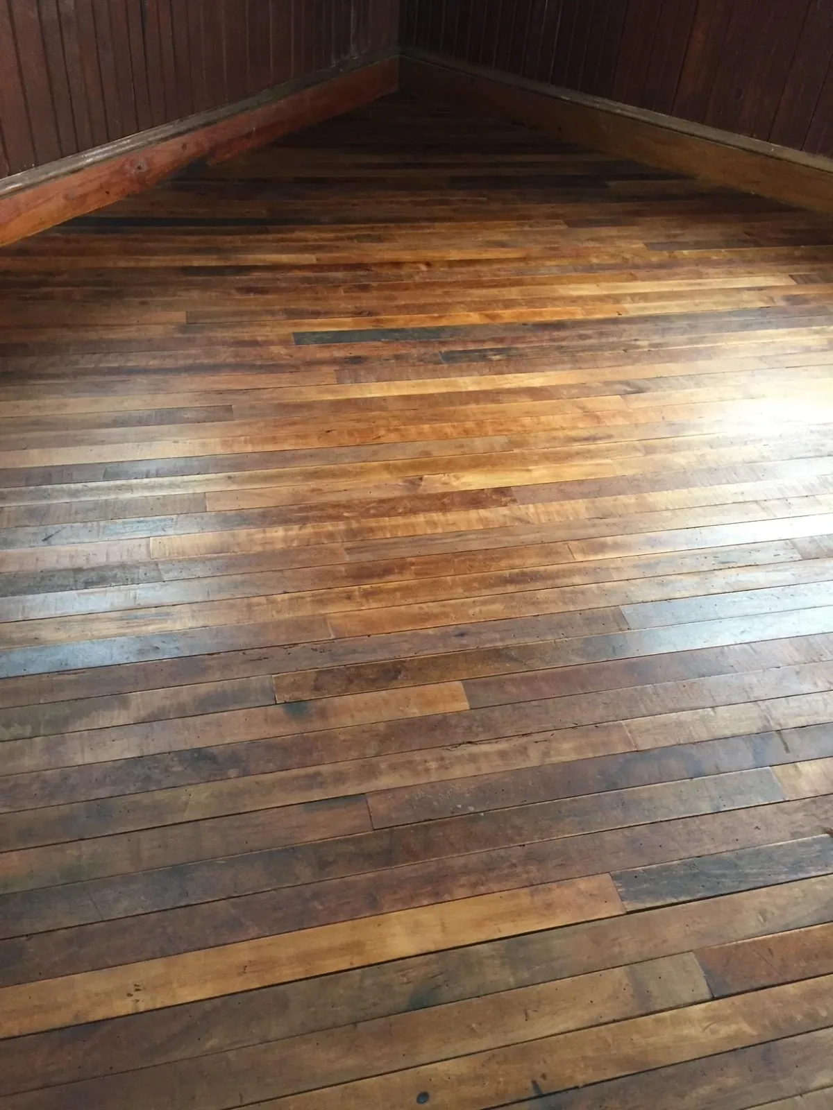 Reclaimed from a old school, milled, installed, and hand rubbed with a natural oil finish. 100 year old heart pine finding a new life in Corolla, NC