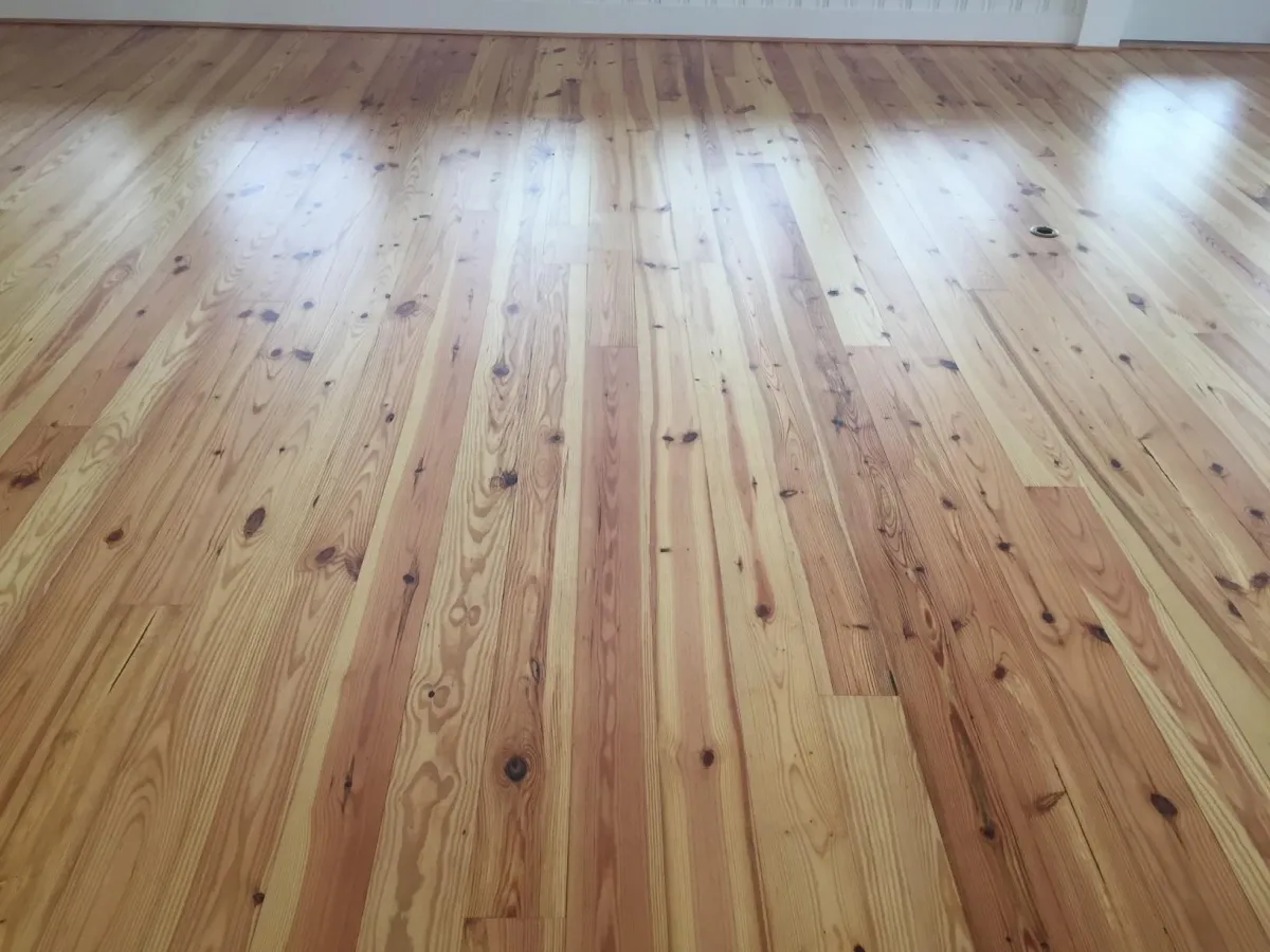 Old yellow pine floor sanded and finished back to new in Nags Head, NC