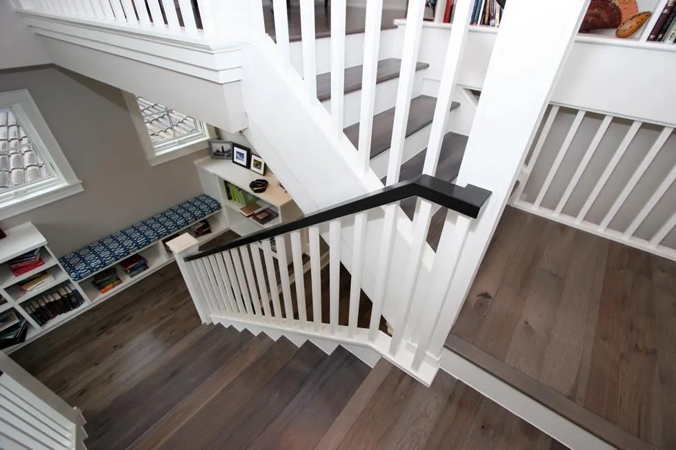 Custom Staircase and new hickory floors stained aged pewter in Corolla, NC