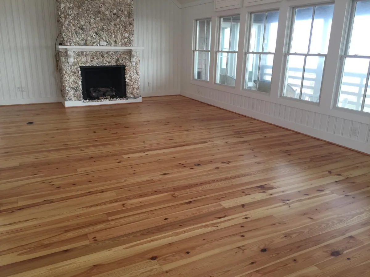 New Heart Knotty Pine floor installed and finished in Corolla, NC