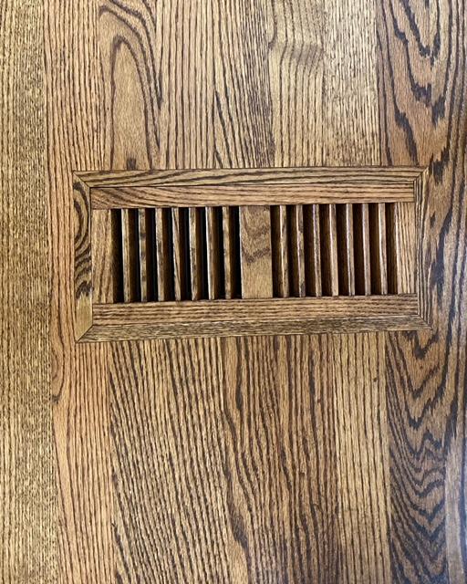 Flush mount matching vents in this red oak floor stained with early american. Kitty Hawk, NC
