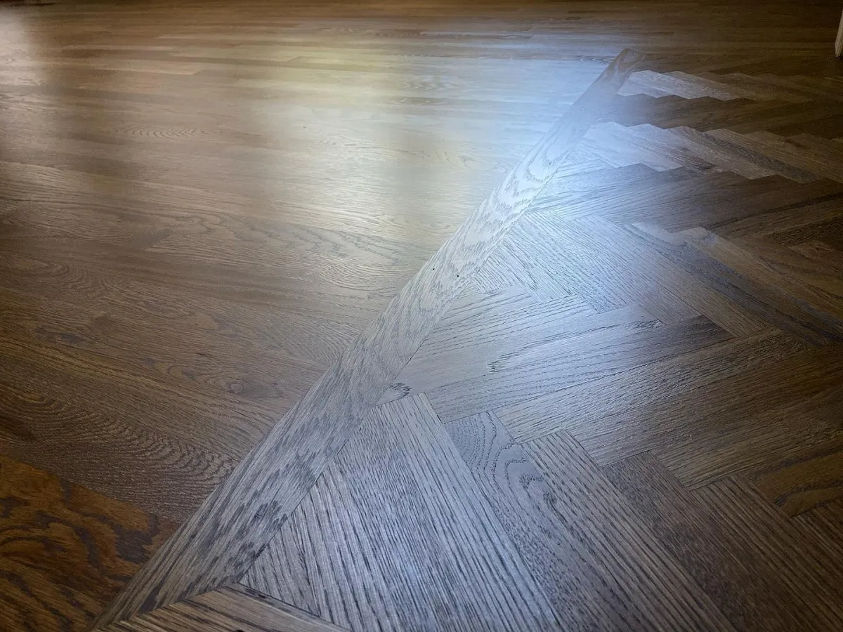 Herringbone install with white oak stained early american in Kitty Hawk, NC